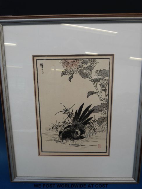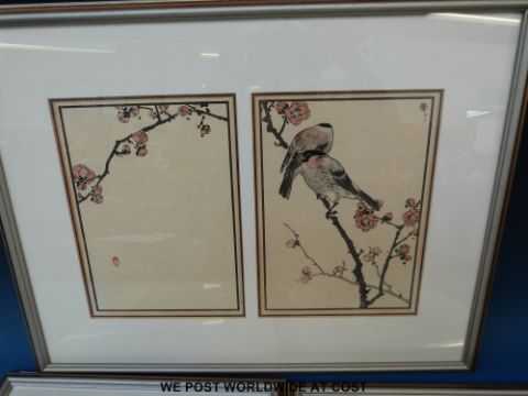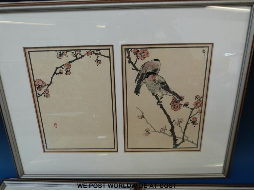 A set of four framed Japanese woodblock prints of birds, all with seal marks (all 22 x 16cm)