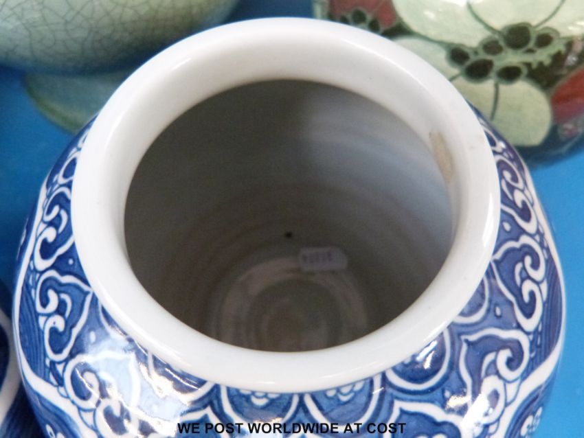 A collection of Chinese and Korean ceramics to include a large jar decorated with symbols, celadon vase etc