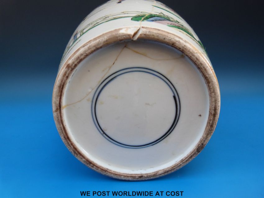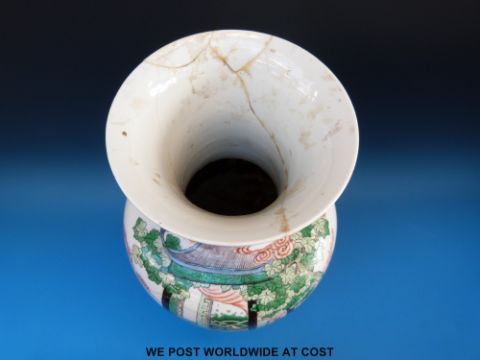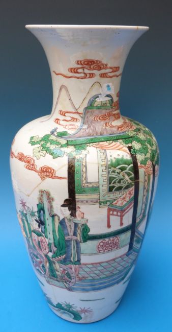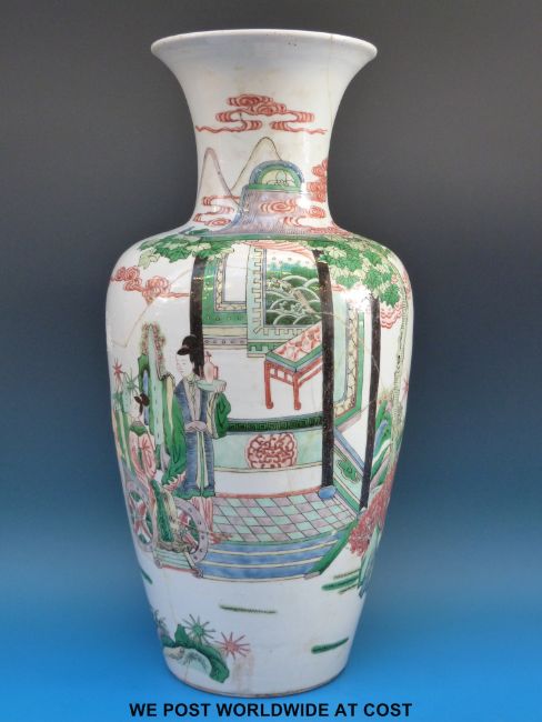 A 19thC Chinese famille verte vase decorated with court scenes (46cm tall)