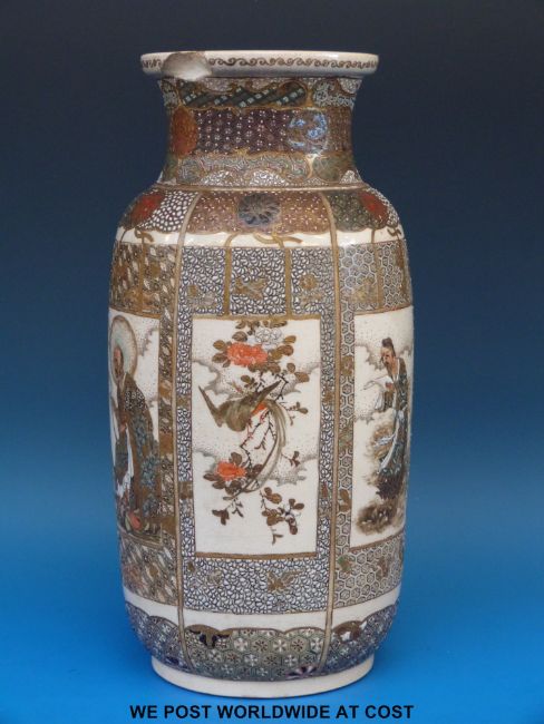 A Japanese Satsuma vase decorated with six panels alternately depicting figures and flowers (30.5cm tall)