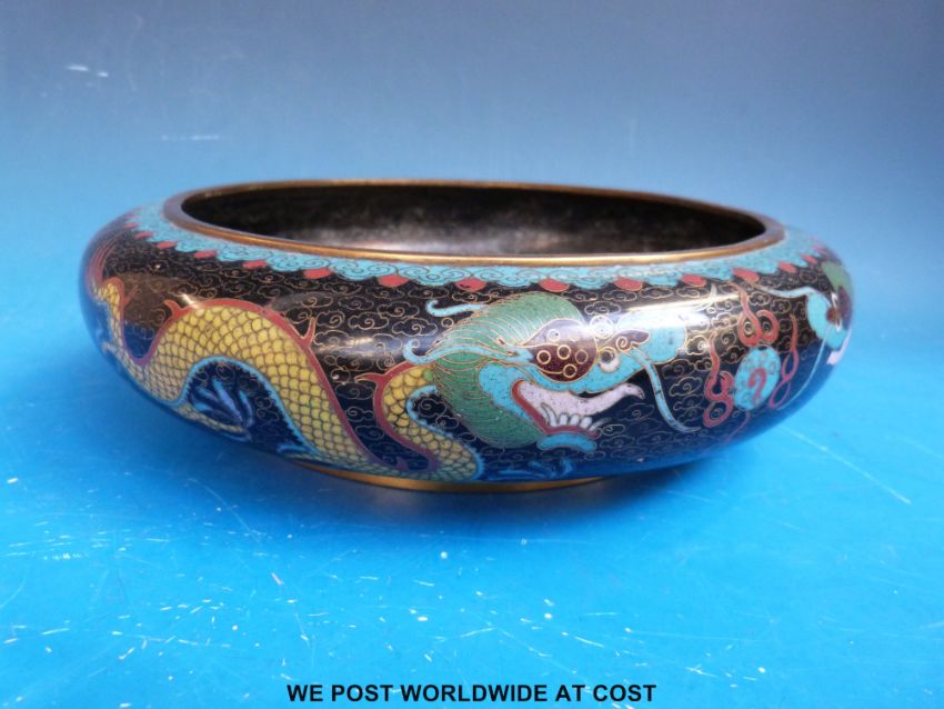 A large 19thC Chinese cloisonné censer with dragon decoration and faux Ming mark to base (25.5cm diameter)