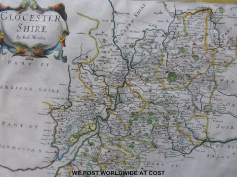 Robert Morden 17thC coloured map of Gloucestershire (35 x 43cm)