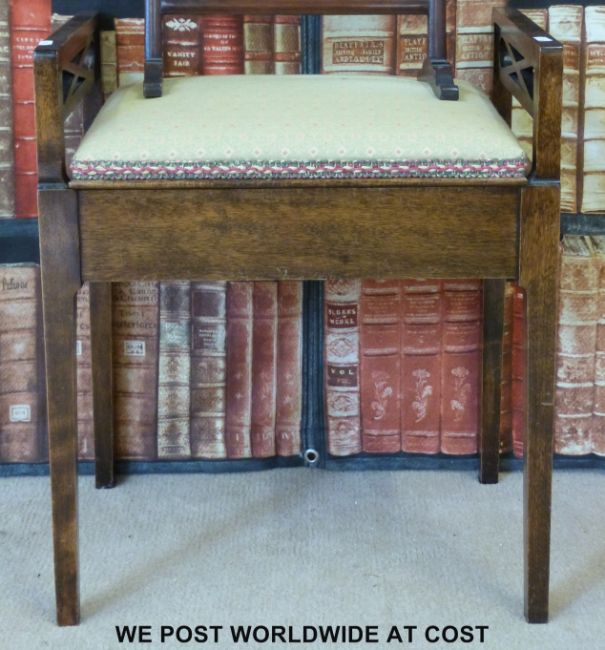 An upholstered piano stool