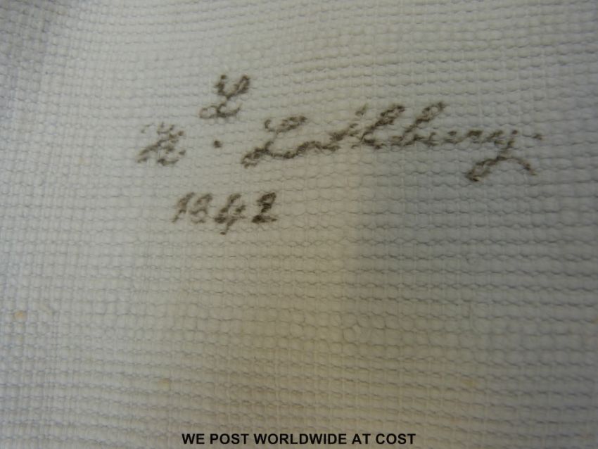 A signed and dated embroidered bedcover 1842 (approximately l298cm x w255cm)