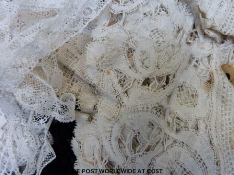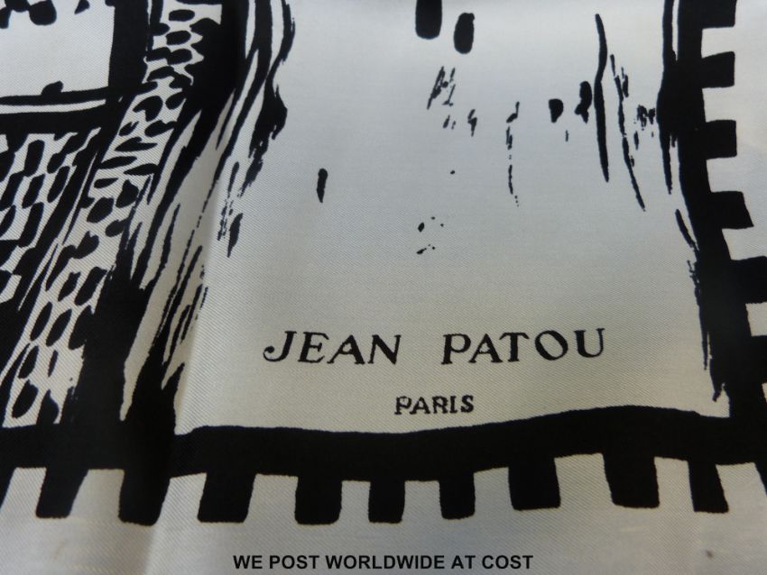 Mixed textiles to include lace, kid gloves, Dior, Patou, and Mappin & Webb scarves, ivory and horn walking stick handles, etc.