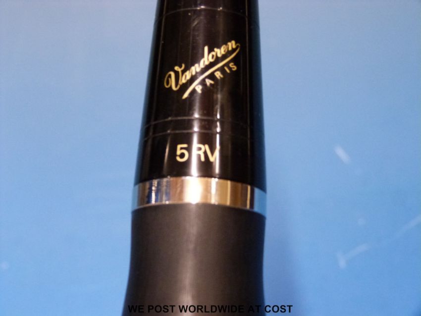 A cased English clarinet by Hanson with a Vandoren Paris 5 RV mouthpiece