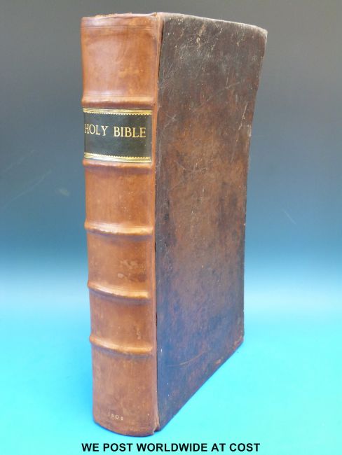 "The Christian's Complete Family Bible" (Liverpool, Nuttall, Fisher and Dixon, 1808). Full leather, rebound spine