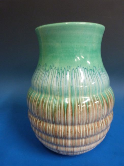 Shelley Art Deco vase with green and brown trailing decoration (20cm tall)