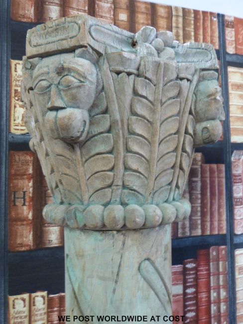 A pair of carved pine columns with octagonal central section (height approximately 210cm)