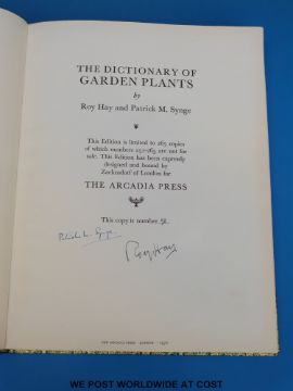 A signed limited edition (No 52 of 265) Dictionary of Garden Plants by Roy Hay and Patrick M Synge. Arcadia Press 1970, in fold over slip / box