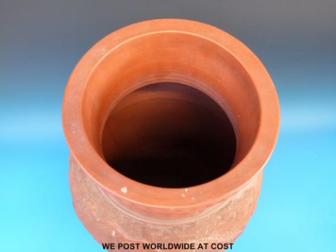 A pair of 19thC Japanese terracotta floor vases with dragon decoration (50cm tall)