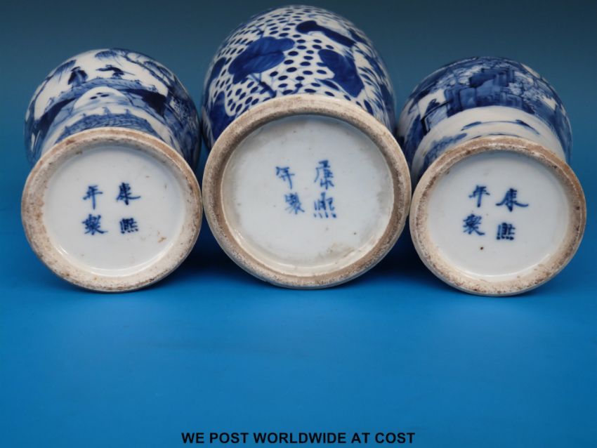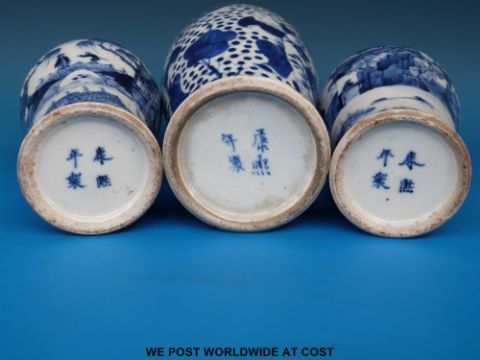 Three small 19thC Chinese blue and white vases (tallest 23cm tall)