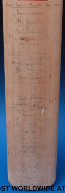 A signed cricket bat - Gloucestershire v Yorkshire 1987 (including Jack Russell)