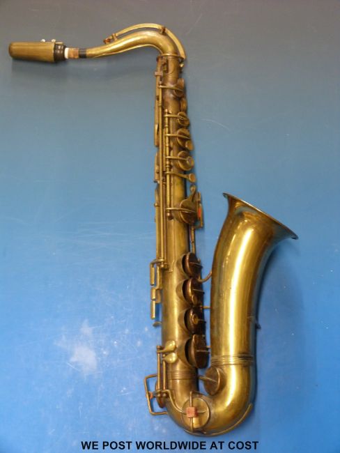 A "C" melody Hawkes & Son saxophone, marked Denmark St, Piccadilly, London, with stand etc