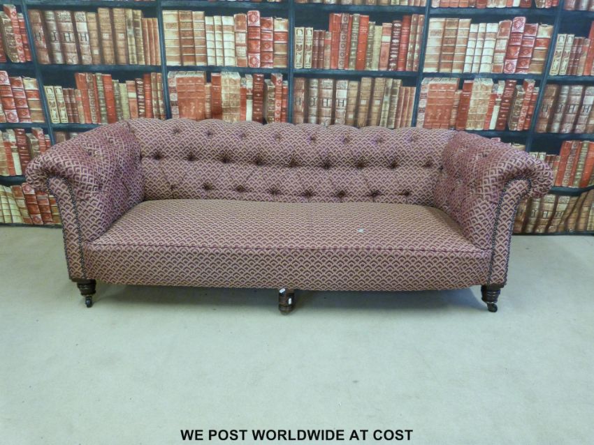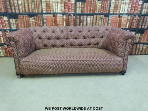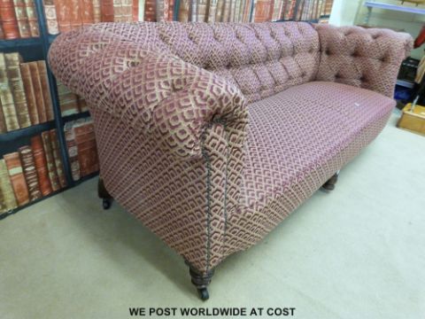 A near pair of late 19thC / 20thC Chesterfield sofas, each approximately 200cm long