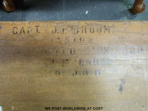 A military pine trunk named Capt J F Broom to lid (w78cm)