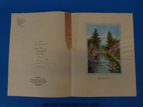 Queen Mary original signed Christmas card from 1932/3. Large card with mounted colour prints