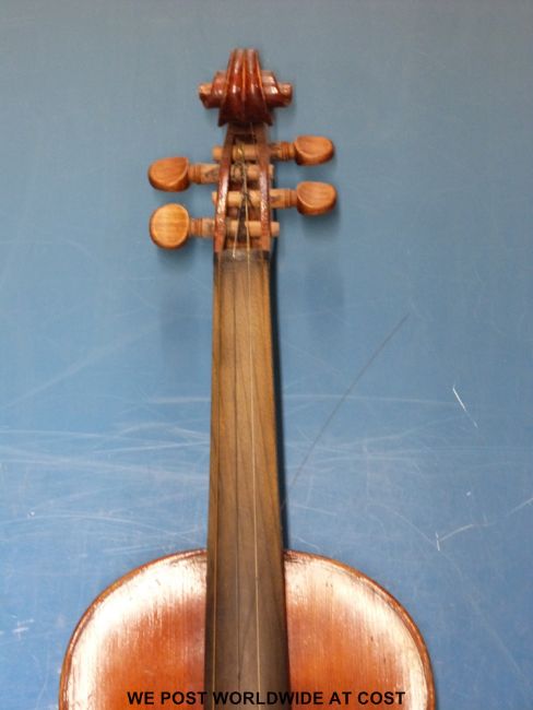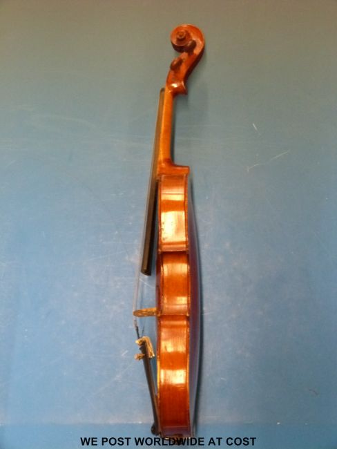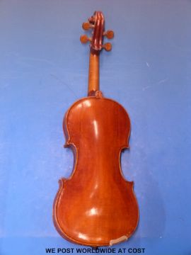 A circa 1900 probably German or Tyrolean cased violin (33.5cm back)