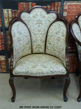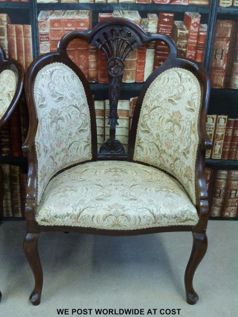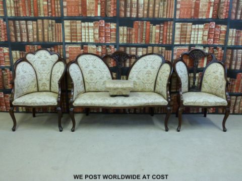 A show wood framed upholstered conservatory or similar three piece suite