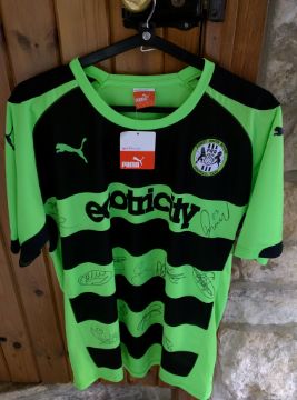 A signed shirt and four hospitality tickets provided by Ecotricity & Forest Green Rovers. 2015/16 could mark FGR's promotion to the Football League, making this lot a rare collector's treasure trove and comprises 4 Forest Green Rovers Boardroom tickets which include food, refreshments & all hospitality for a match of the buyer's choice during 2015/16 season, a 1st team shirt (large size) signed by the players and a team photo.