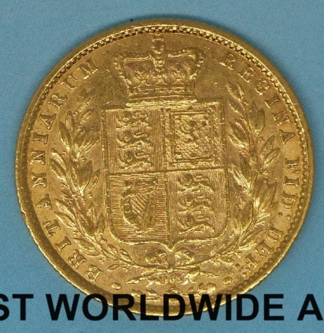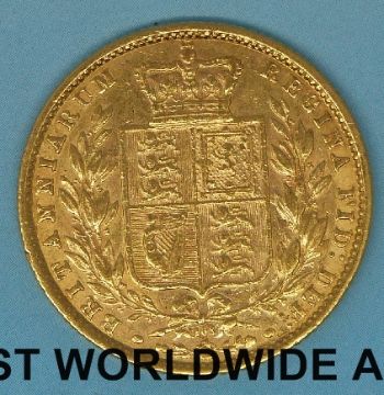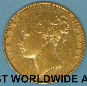 An 1871 Sydney mint young head gold full sovereign shield reverse, die no 103