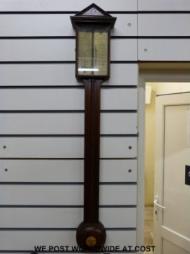 A barometer marked S Sharpe to base with fishing interest decoration to face and 'fish will bite when the weather is right'