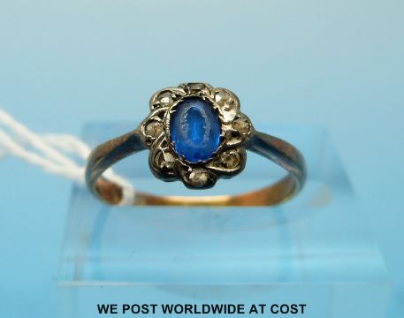 A Victorian ring set with a blue stone surrounded by old cut diamonds (size L/M)