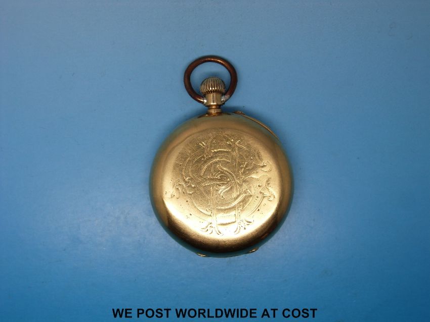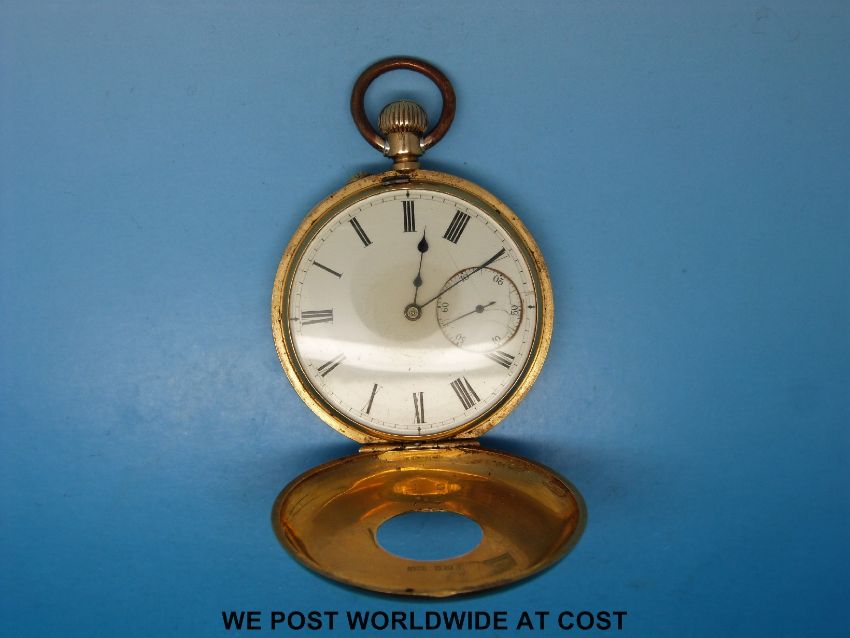 A late 19thC gentleman's 18ct continental gold half hunter pocket watch with keyless movement