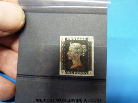A Victorian penny black plate 9. FI. Red Maltese Cross