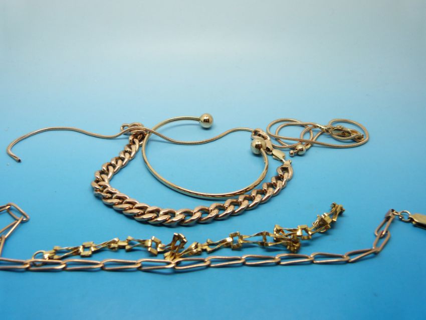 Four 9ct gold bracelets and a 9ct gold necklace (28.4g)