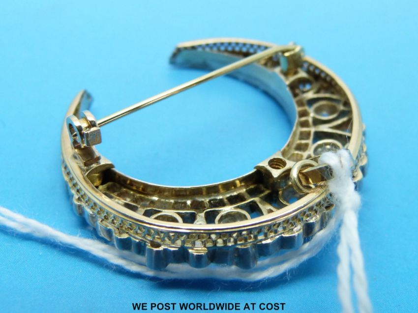 A Victorian gold and platinum brooch set with old cut diamonds in a crescent shape the largest diamond measuring approx 0.25ct