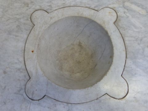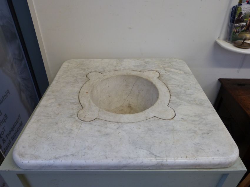 A marble mortar in marble surround (H88 x 86cm square)