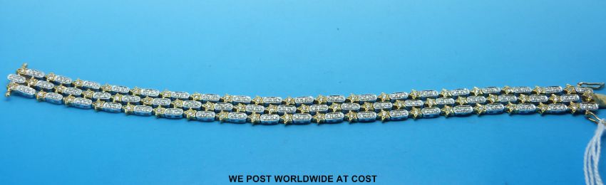 An 18ct gold bicoloured bracelet set with diamonds in a star and oval design