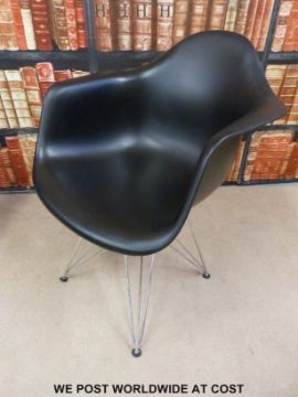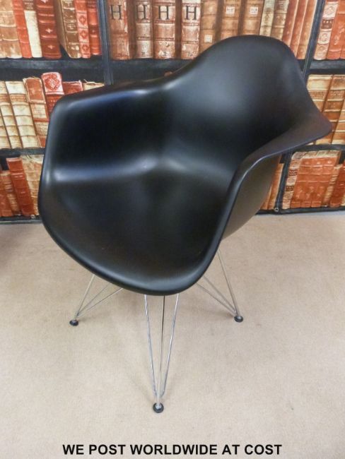 A pair of Charles & Ray Eames Herman Miller style chairs raised on chrome legs