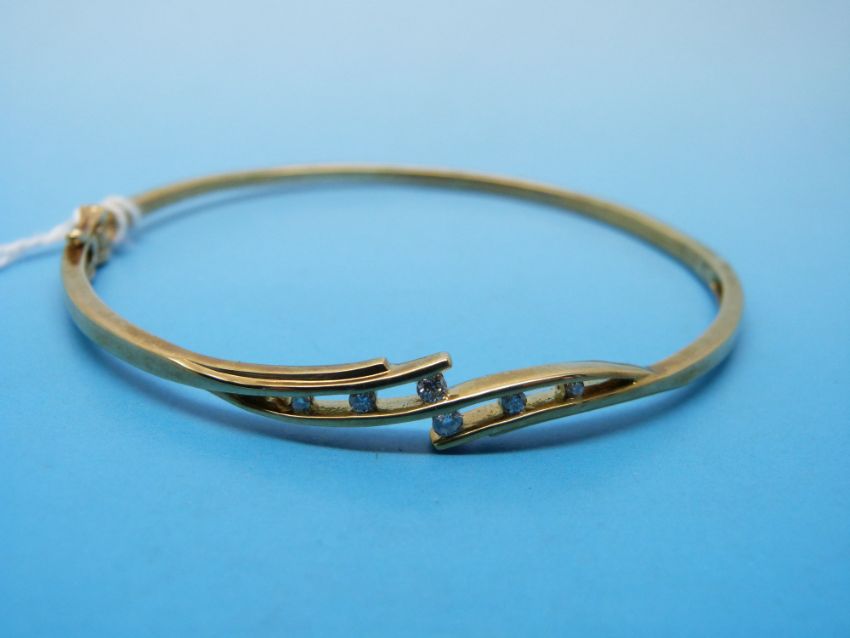 A 9ct gold bangle set with six diamonds