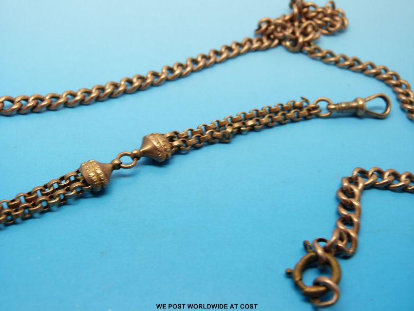 A 9ct gold Albert chain and a yellow metal ladies fob chain marked 9ct gold (22.8g)