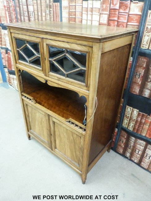 A 19thC walnut sideboard with two glazed doors with bevelled glass, shelf below and cupboard to base (H110 x W76 x D45cm)
