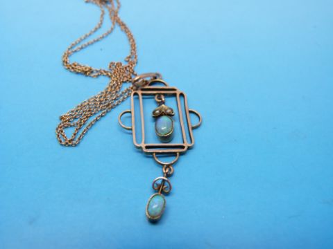 An Edwardian pendant set with two opals and seed pearls
