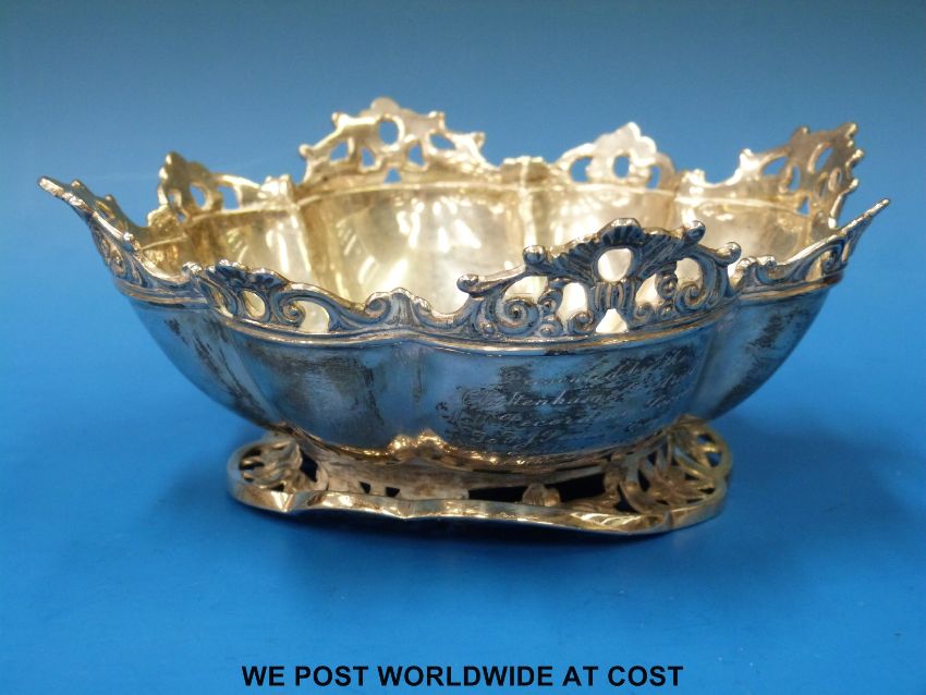 A Selfridge & Co Edwardian hallmarked silver bowl with pierced edge and foot, London 1908 (diameter 18cm, weight 360g)