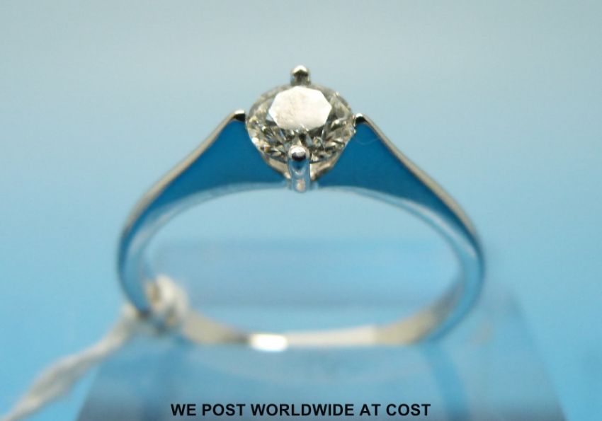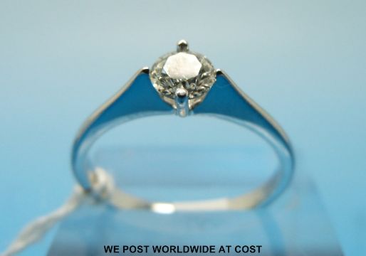 An 18ct white gold ring set with a round brilliant cut diamond measuring approximately 0.5ct (size P)