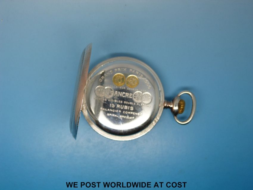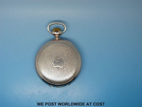 Zenith gentleman's pocket watch with keyless movement in continental silver case with engine turned back
