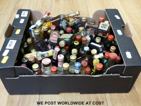 A collection of approximately 50 alcohol miniature liquors to include examples from France (Benedictine), Germany, Israel and Holland