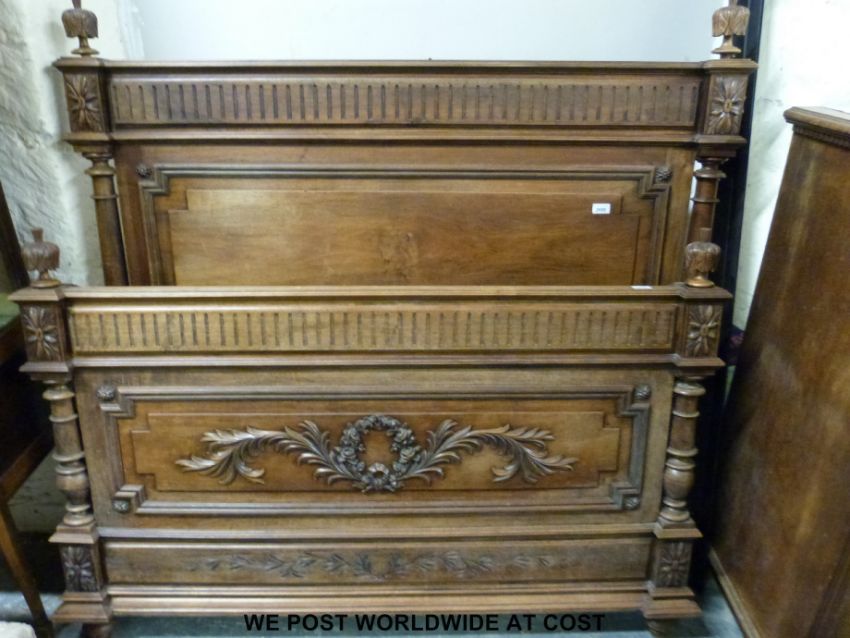 A carved French walnut double bed (width 149cm)