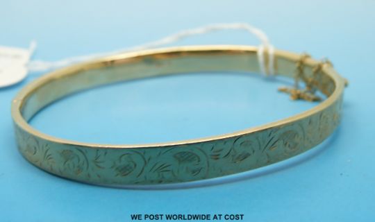A 9ct gold bangle with chased decoration