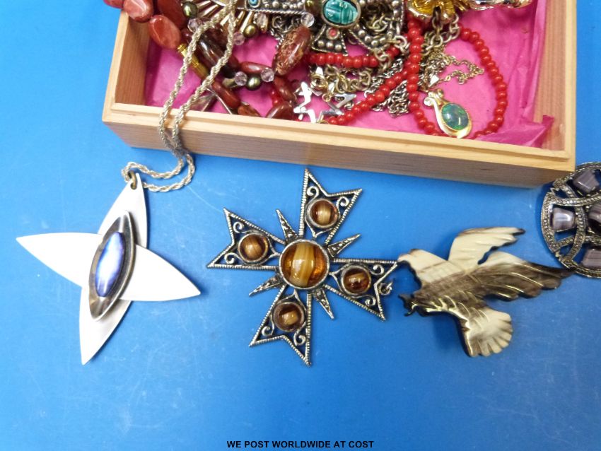 A collection of costume jewellery to include brooches by Sphinx, Exquisite, Trifari, Hollywood and a steel pendant by Ralph Weston
