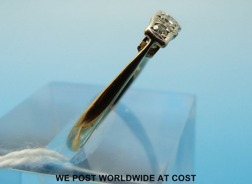 An 18ct gold ring set with three diamonds in platinum (size N)