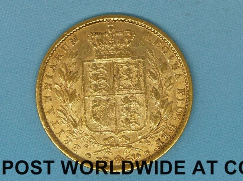 An 1850 young head gold full sovereign shield reverse
