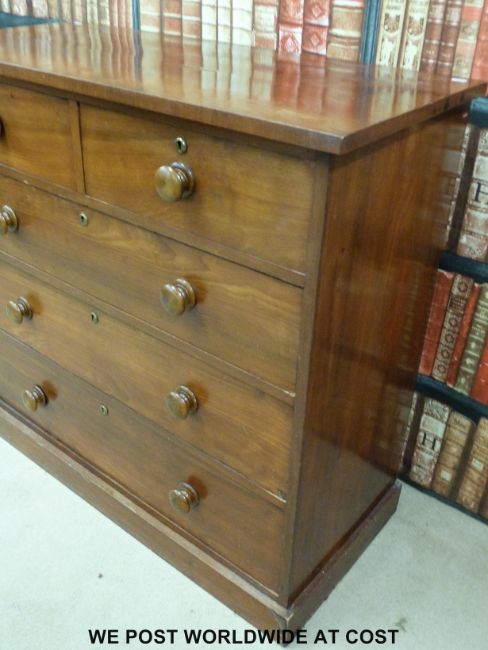 A 19thC mahogany or possibly ash chest of two over three drawers with turned handles (H100 x W107 x D48cm)