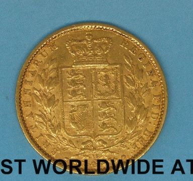 An 1869 young head gold full sovereign shield reverse, die no 18