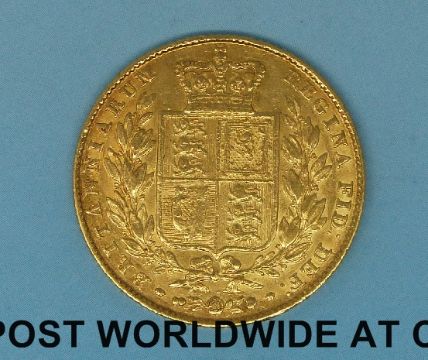 An 1842 young head gold full sovereign shield reverse
